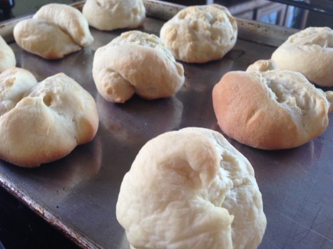 After cycle has completed take dough out onto a floured surface. Begin rolling the dough into a circle about 1 inch thick. Coat surface lightly with butter. Next roll dough into a cylinder shape. Start to cut wedges as big as you please. I make mine roughly around 3 inches big. Roll into balls. Place dough…
