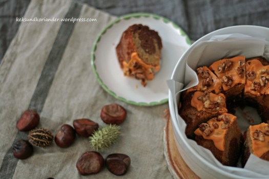 Ein Kuchen in den Farben des Herbsts: Kürbismarmorkuchen mit karamellisierten Walnüssen