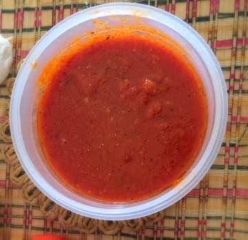 This is my favourite make from scratch recipe. It is homemade Marinara sauce. This is the easiest version ever, very flavourful and can be made in under 10 minutes if you have tomato puree and minced garlic in your freezer.