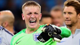 England hat aus Jordanien Hendersons Elfmeter von David Ospina gemacht, aber Mateus Uribe hat den folgenden Freistoss an der Latte, um den Weg für Pickford und Dier frei zu machen.