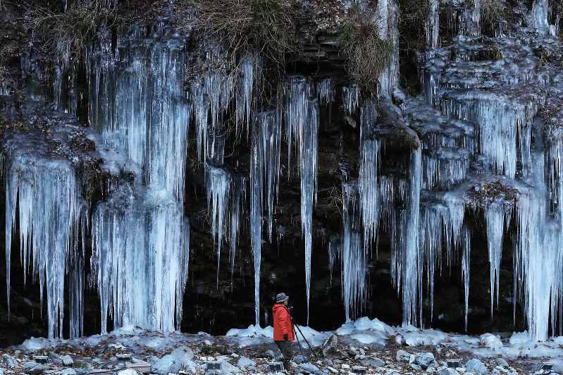Wenn es regnet und das Wetter wieder kalt wird, werden die Eiszapfen noch dicker. Das Eis wird bis zum 12. Februar nachts beleuchtet. (Mainichi)