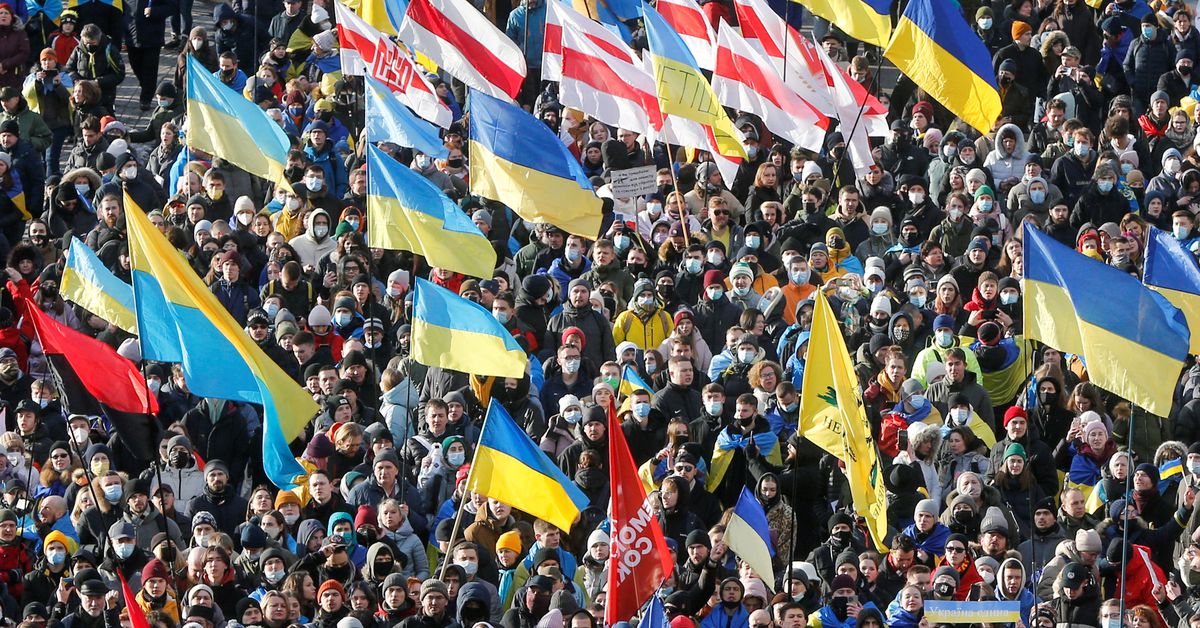 Tausende demonstrieren in Kiew, um Einheit gegen die russische Bedrohung zu demonstrieren