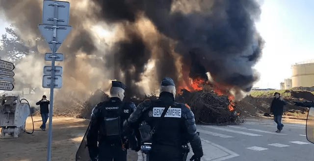 Ein Dutzend Gendarmerielastwagen trafen vor dem Öldepot von Brest ein . Die Männer stellten sich vor der Barrikade auf. François Calvez, Präsident der CNTAP29, der die Bewegung seit Dienstagmorgen verfolgt, tauscht sich mit den Gendarmen aus: „Wir sind nicht hier, um zu brechen. Wir wollen Recht behalten, auch die Regierung muss mit uns Recht behalten. »