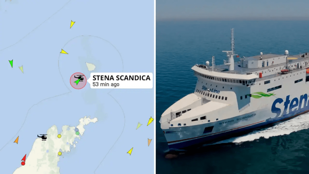 Die Person sagt auch, dass der Kapitän der Gotland-Fähre in einer Ankündigung gesagt habe, dass Stena Scandica um 13 Uhr einen Notruf abgesetzt habe.