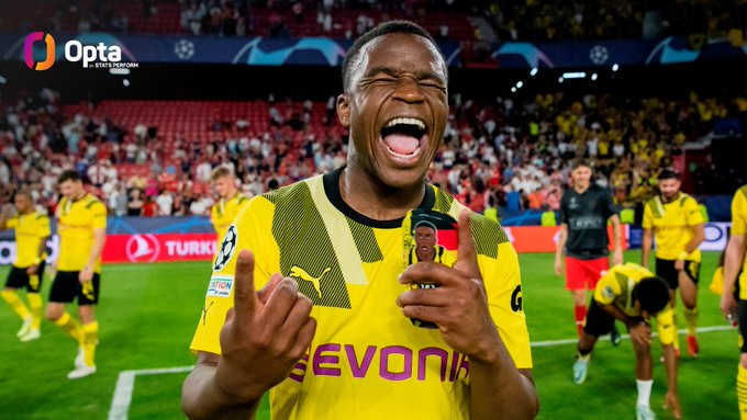 Youssoufa Moukoko wurde gegen den FC Sevilla mit 17 Jahren und 319 Tagen zum jüngsten deutschen Vorlagengeber in der Champions League seit Beginn der det. Datenerfassung zur Saison 2003/04. YOUwel. #UCL#SEVBVB@BVB