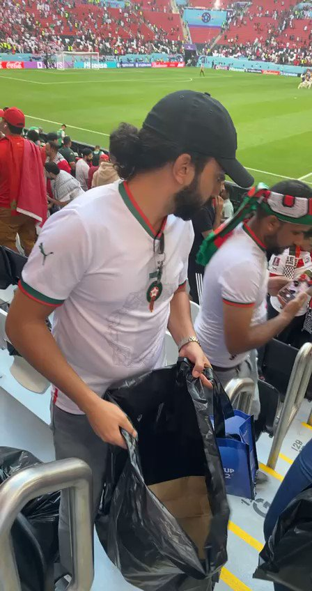 الجمهور المغربي ينظف المدرجات بعد مباراة المغرب وكرواتيا ، اخلاق عالية 👏🏼 pic.twitter.com/wdaa4WeiEI