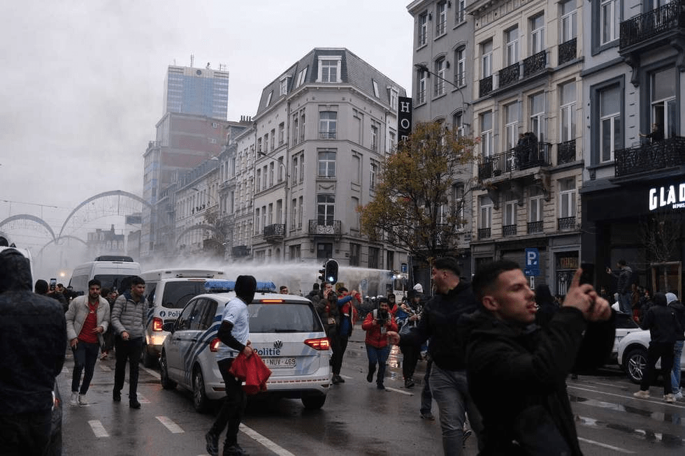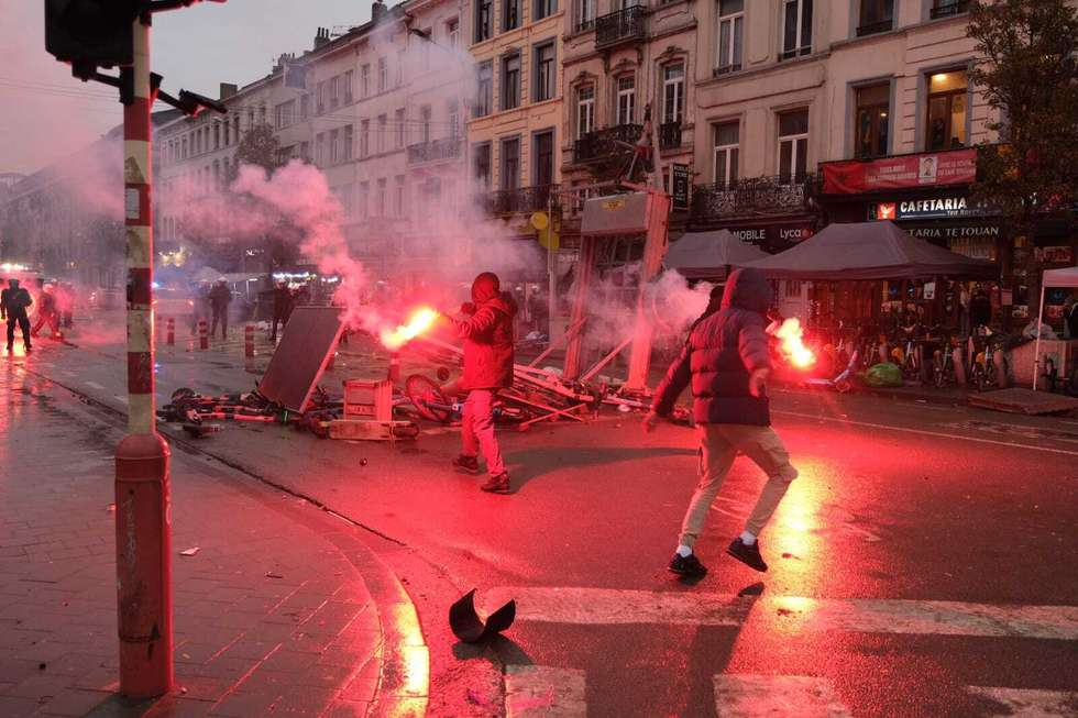 BRÜSSEL,-Auf der Lemonnierlaan zwischen Brüssel Süd und der Börse kam es nach dem Sieg Marokkos gegen Belgien 2:0 bei der Weltmeisterschaft zu Ausschreitungen. Mehrere Jugendliche richteten großen Schaden an und bewarfen die Polizei mit Steinen. Etwa 100 Polizisten sind anwesend und setzten zwei Wasserwerfer ein, um die Randalierer zu stoppen. Die Anspachlaan war zwischenzeitlich gesperrt.