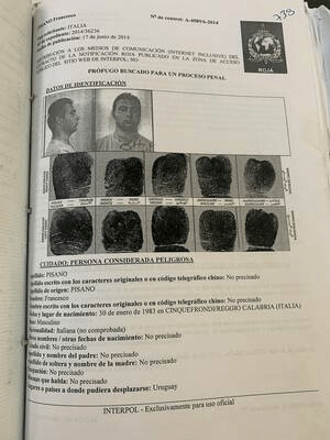 Bildnachweis: Búsqueda (Uruguay)Eine Red Notice von Interpol für Francesco Pisano.