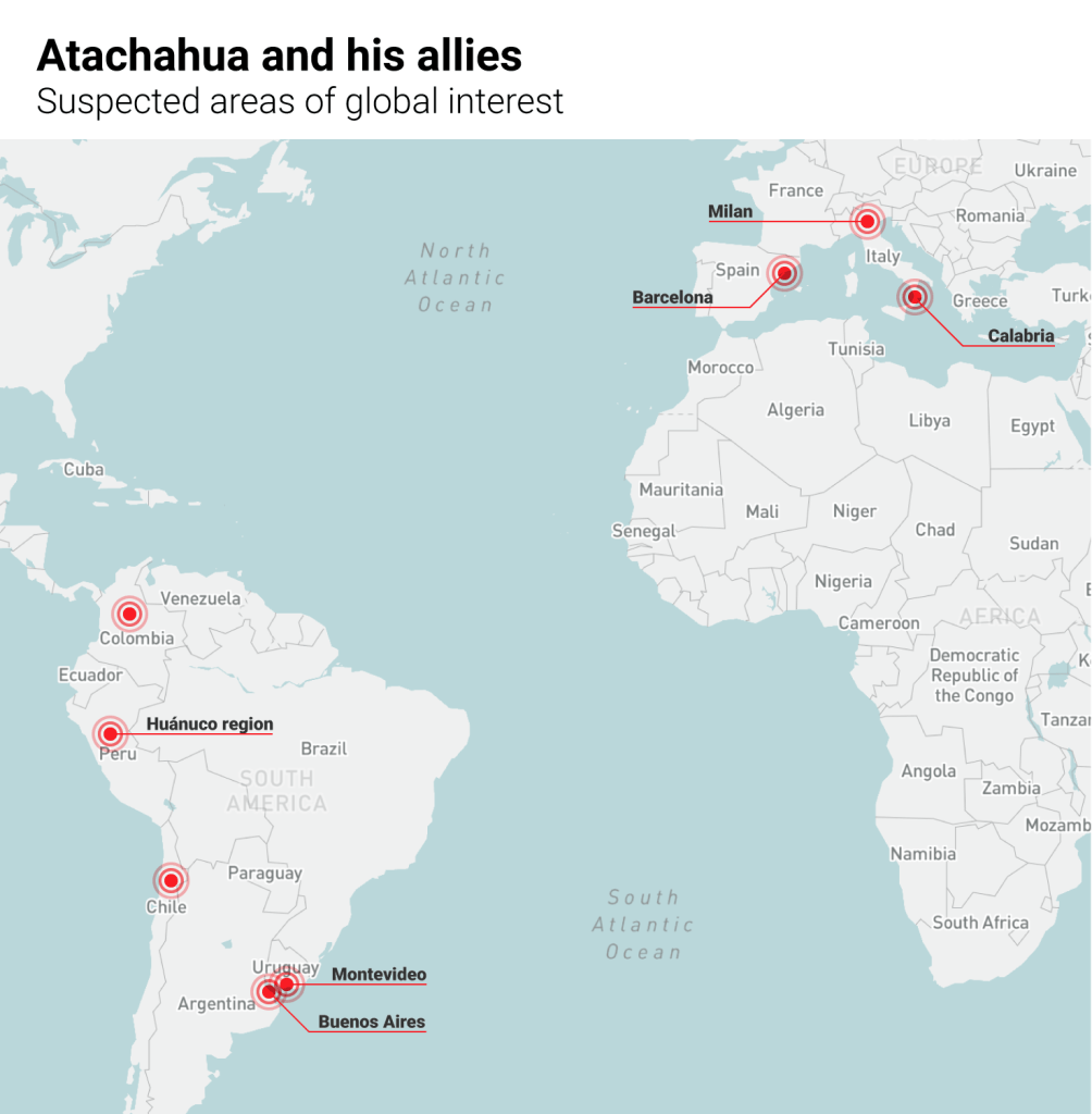 Laut argentinischen Ermittlern bereitete Atachahua in den Monaten vor seiner Festnahme im Jahr 2020 den Versand einer großen Drogenlieferung nach Spanien vor. Er schien zu wissen, dass er beschattet wurde, schaffte es aber, einen Schritt voraus zu bleiben. Jedes Mal, wenn er über den internationalen Flughafen Ministro Pistarini in Buenos Aires in Argentinien ankam, umkreiste er die Einrichtung mindestens eine Stunde lang, um die Beamten zu verlieren. „Er hat es immer geschafft“, sagte eine Quelle, die dem Fall nahe steht.