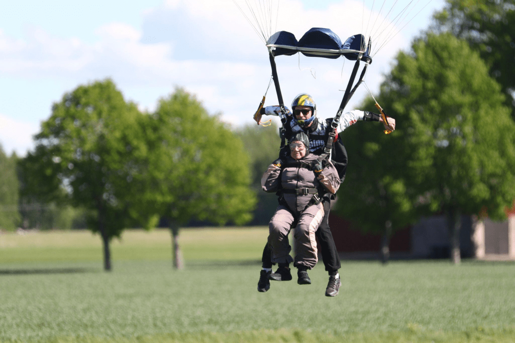 STOCKHOLM: Eine 103-jährige Schwedin stellte am Sonntag den Weltrekord für die älteste Person auf, die einen Tandem-Fallschirmsprung absolvierte, und sagte, sie plane, „mit einem kleinen Kuchen“ zu feiern.