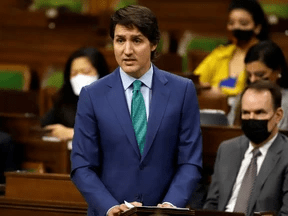 Premierminister Justin Trudeau spricht im Unterhaus über die Umsetzung des Notstandsgesetzes in Ottawa, 17. Februar 2022. FOTO VON PATRICK DOYLE / REUTERS