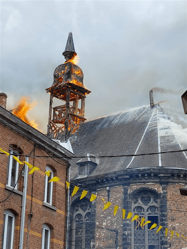 In der Kirche der Récollets in Binche (Provinz Hennegau) brach ein Feuer aus. Die Feuerwehr wurde zum Einsatzort entsandt, um die Flammen zu bekämpfen. Es wurden drei Brandausbrüche festgestellt, die auf Brandstiftung hindeuten könnten. Das Feuer konnte am Nachmittag unter Kontrolle gebracht werden. Die Stadtverwaltung gab an, dass das Dach vollständig zerstört sei und die Standsicherheit des Gebäudes analysiert werden müsse.