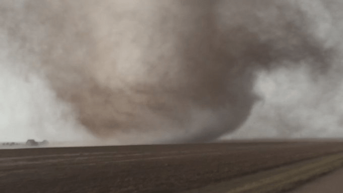 Die Sturmjägerin aus West Texas, Laura Rowe, hat das Bild ihres Lebens aufgenommen, eine fantastische Aufnahme eines ausgewachsenen Superzellen-Gewitters, das in unterschiedlichen Höhen von der untergehenden Sonne beleuchtet wird.