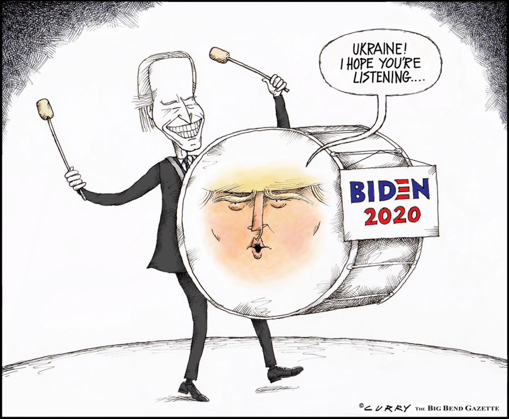 Wochenendkarikatur politische: Trump Biden Ukraine Trommel 2020-2022